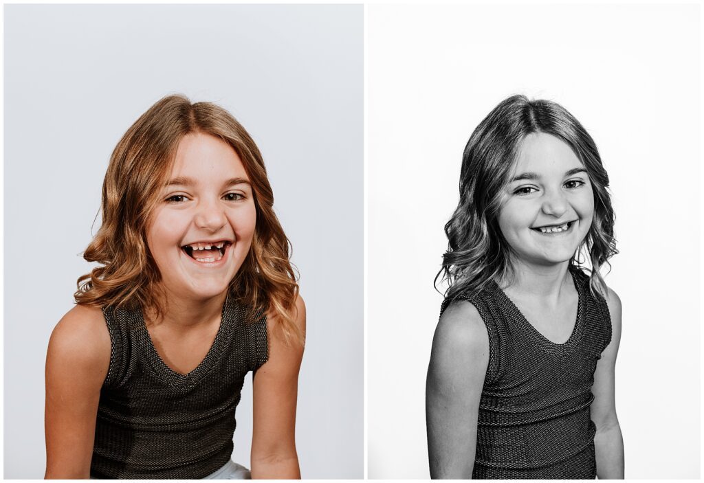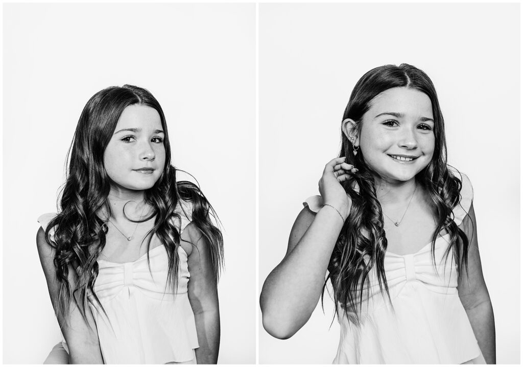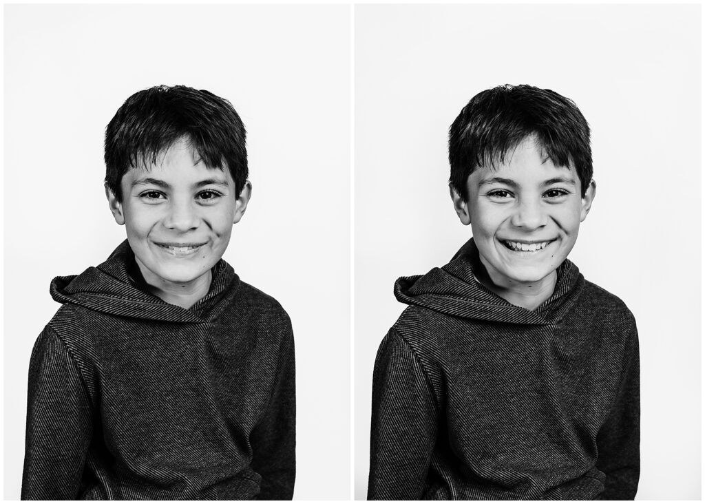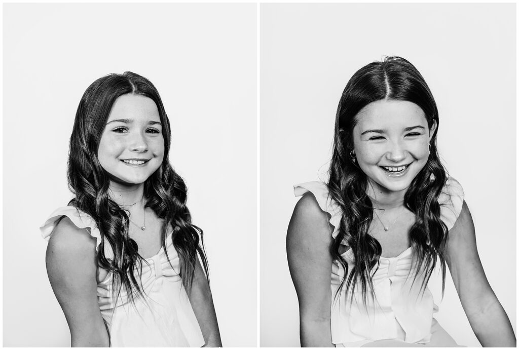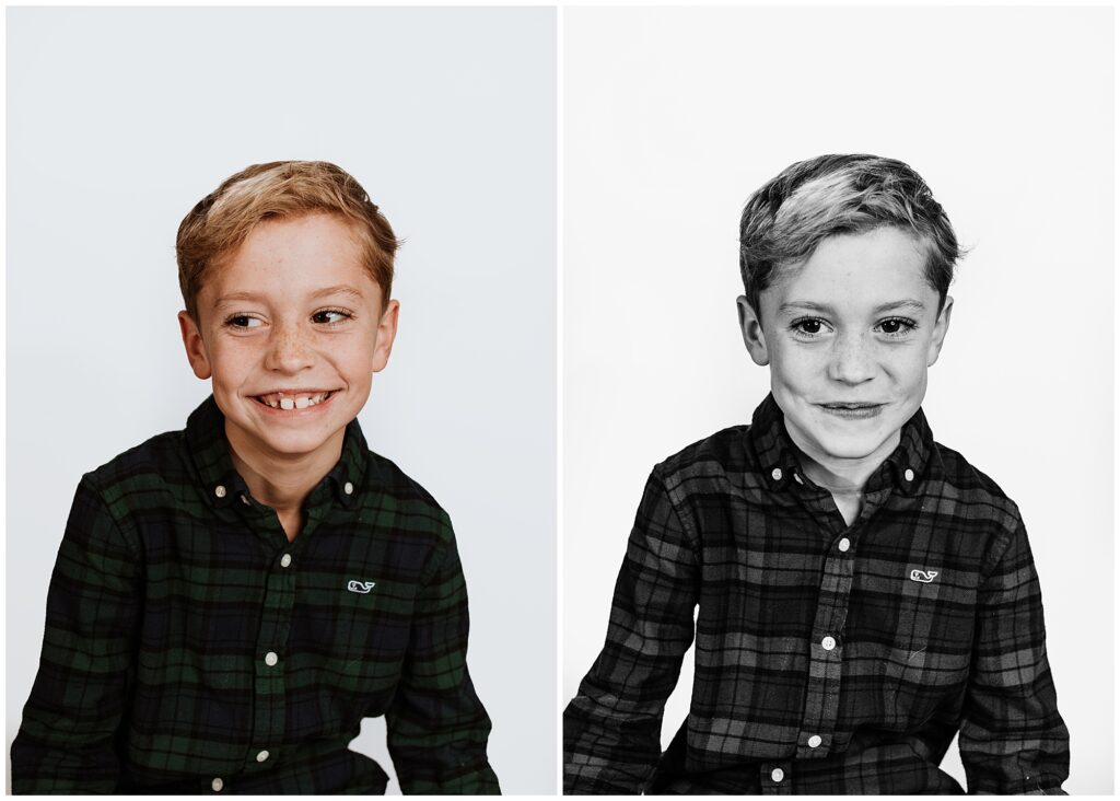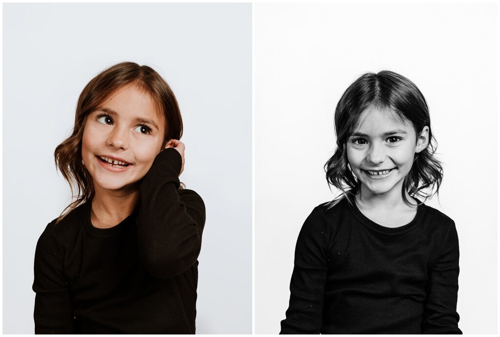 Black and white photography has a way of standing the test of time. These portraits don’t follow trends or seasons; they grow more meaningful as the years pass. From subtle smiles to playful confidence, every expression tells a story — making each image as individual as the child in front of the camera.