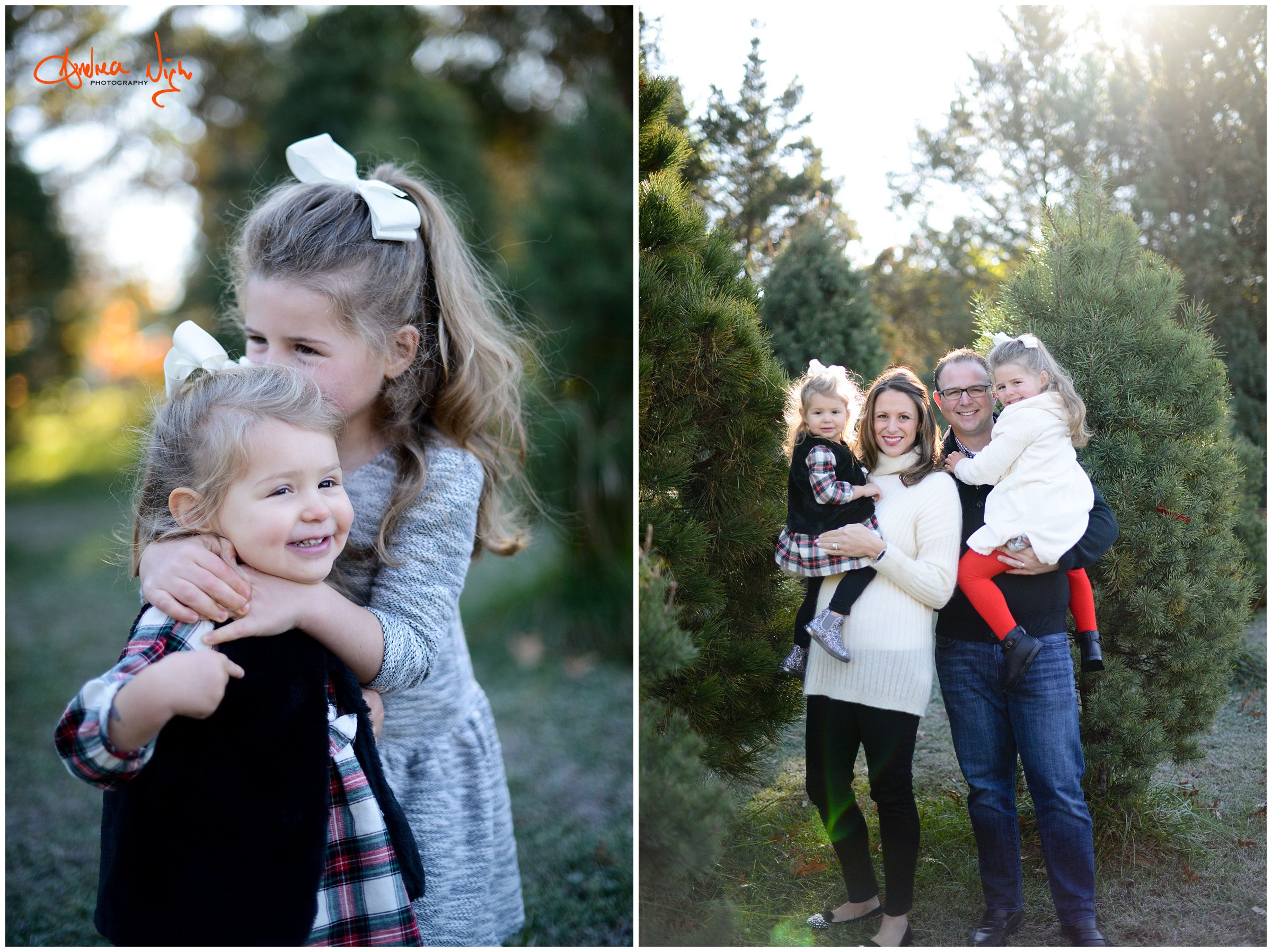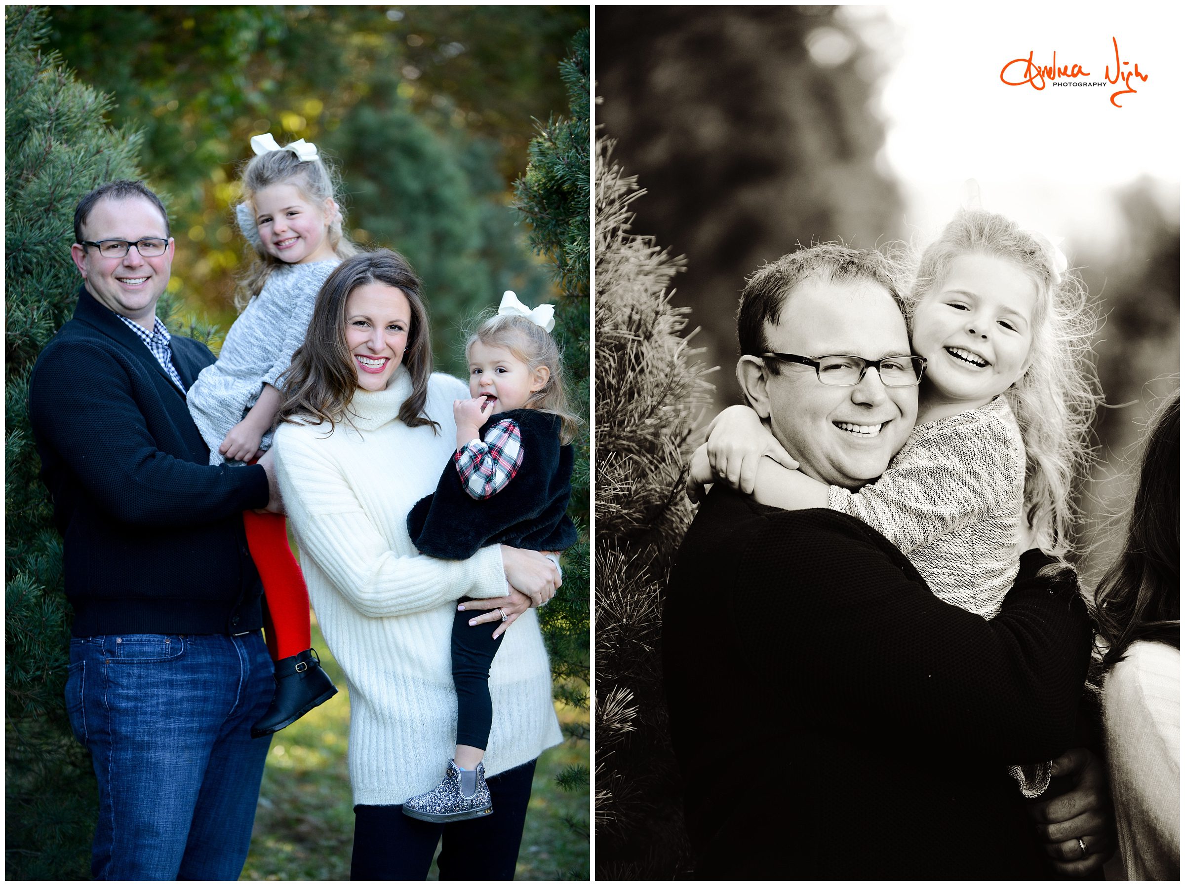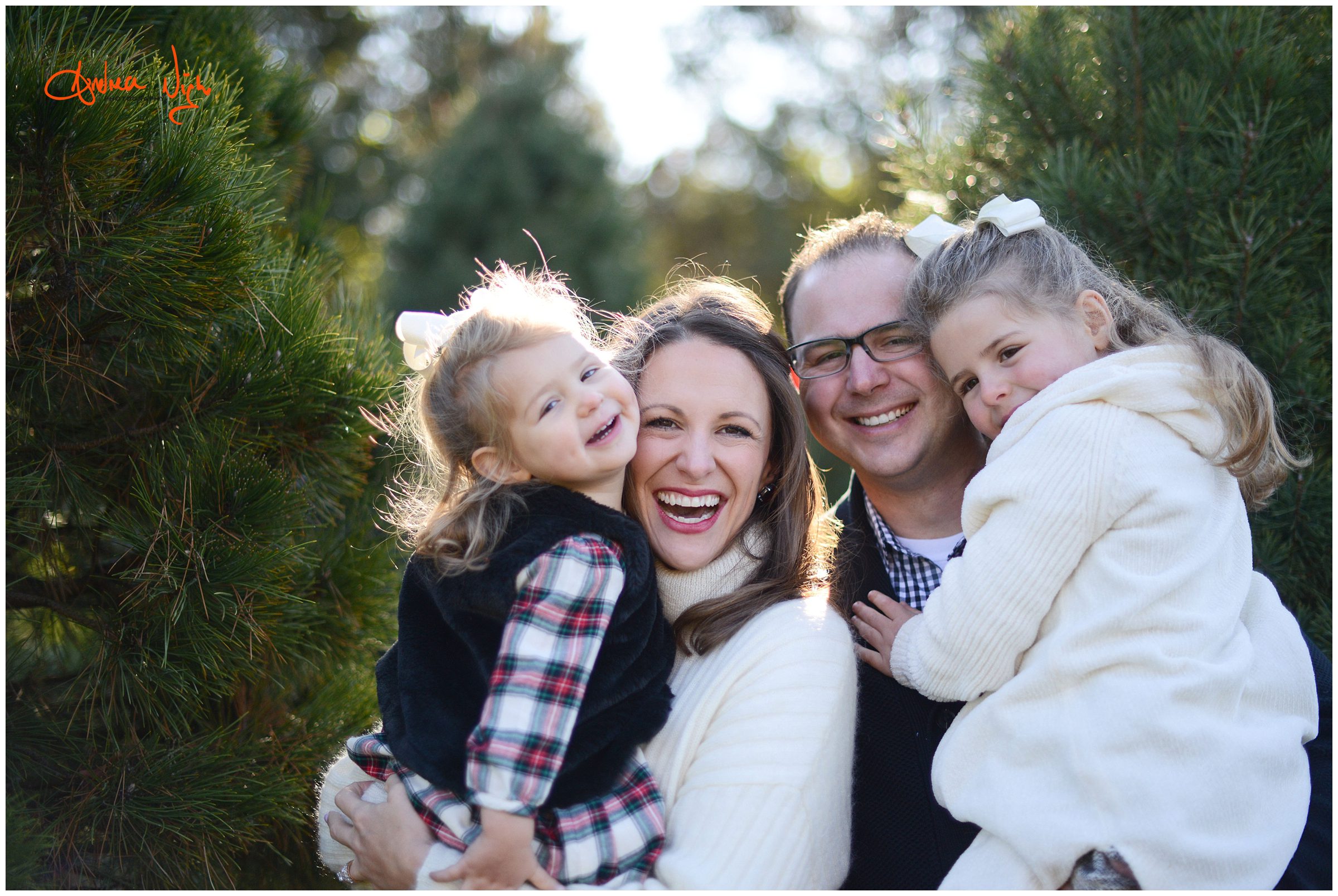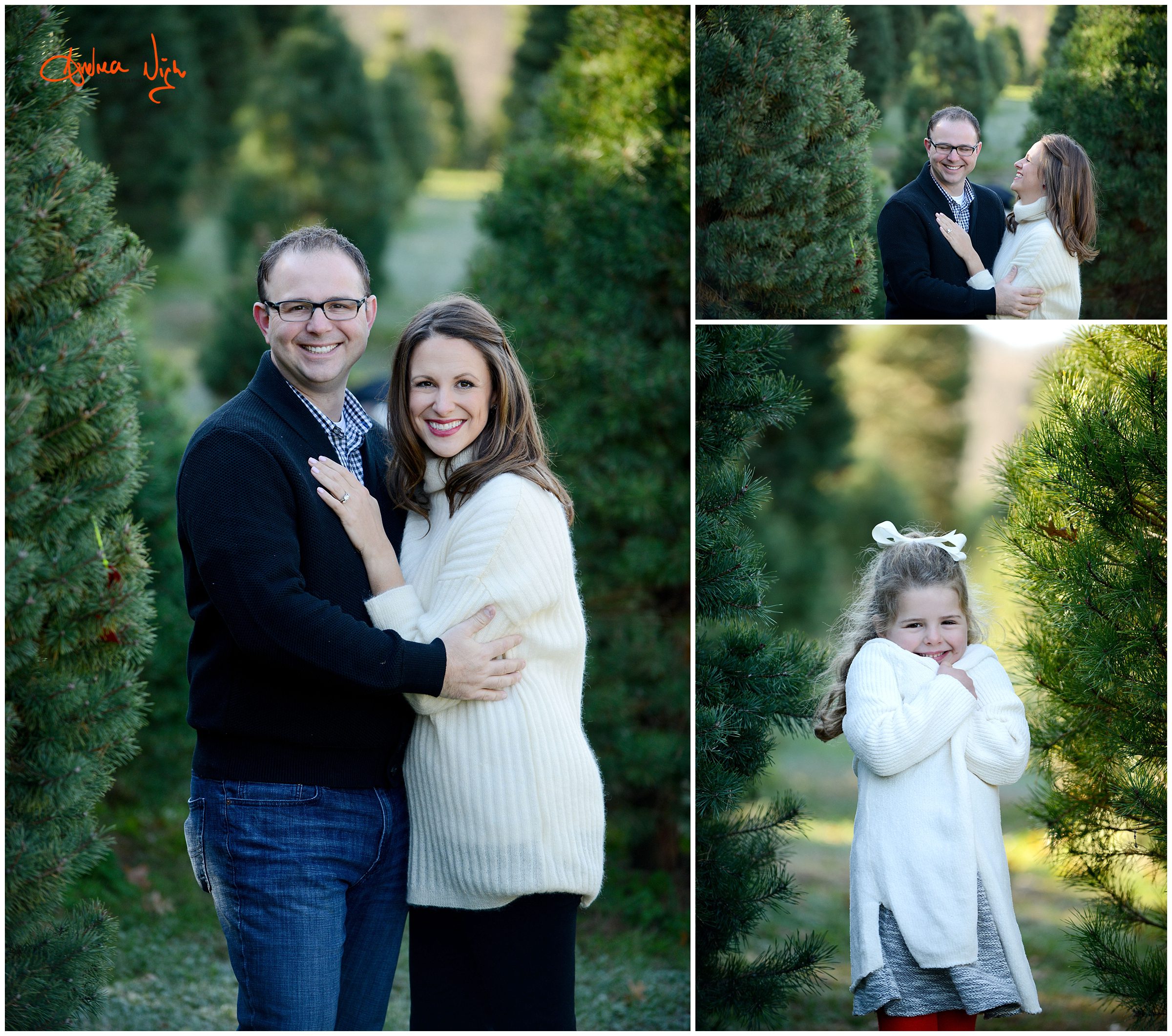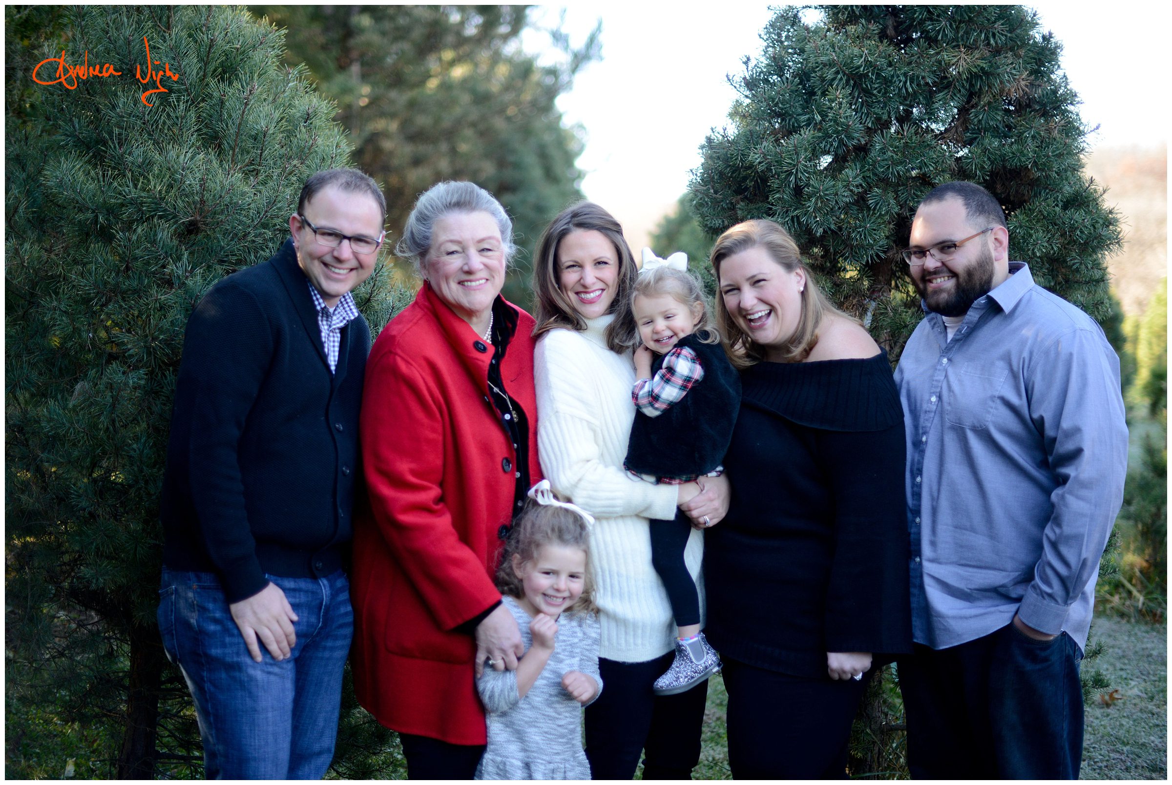 There is something magical about a Christmas tree farm that really puts you in the holiday spirit and I was so excited when the Dailey family wanted to do their pictures there! It was a chilly but beautiful morning at the farm and we had really awesome light for their pictures. I love that Laura’s mom, her sister & her sister’s fiancé were able to join us for the shoot as well! Thank you Dailey family for a fun shoot, I love how festive these are! Merry Christmas! Andrea