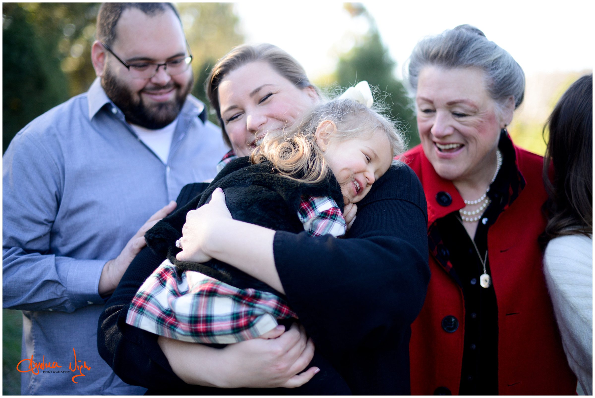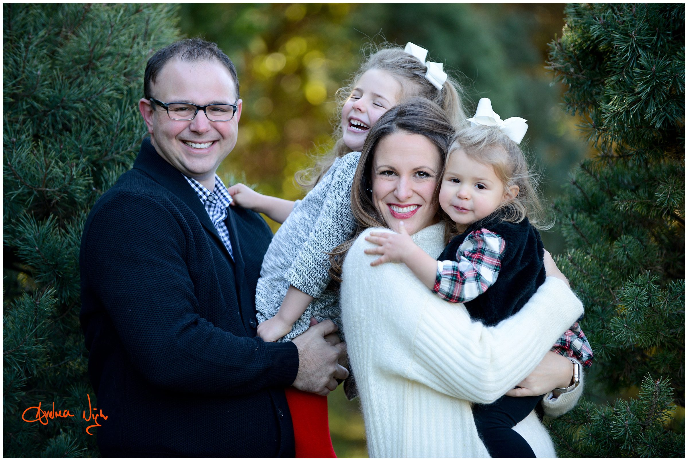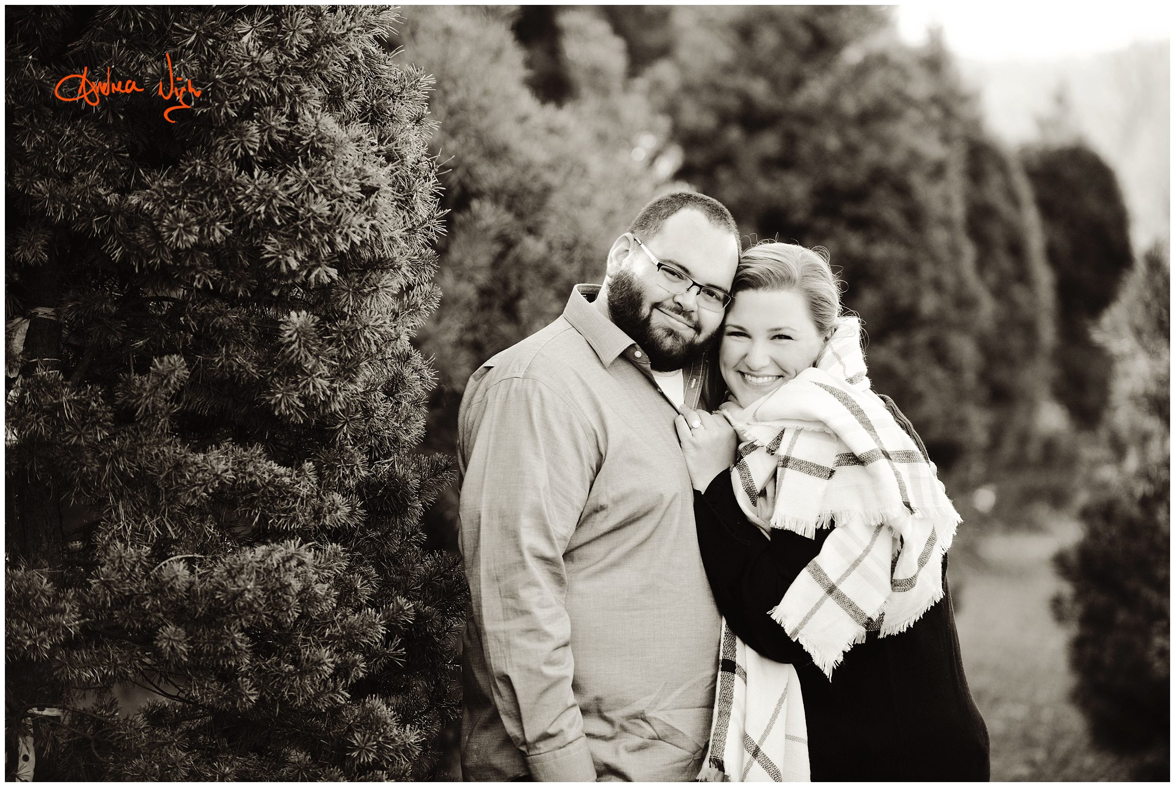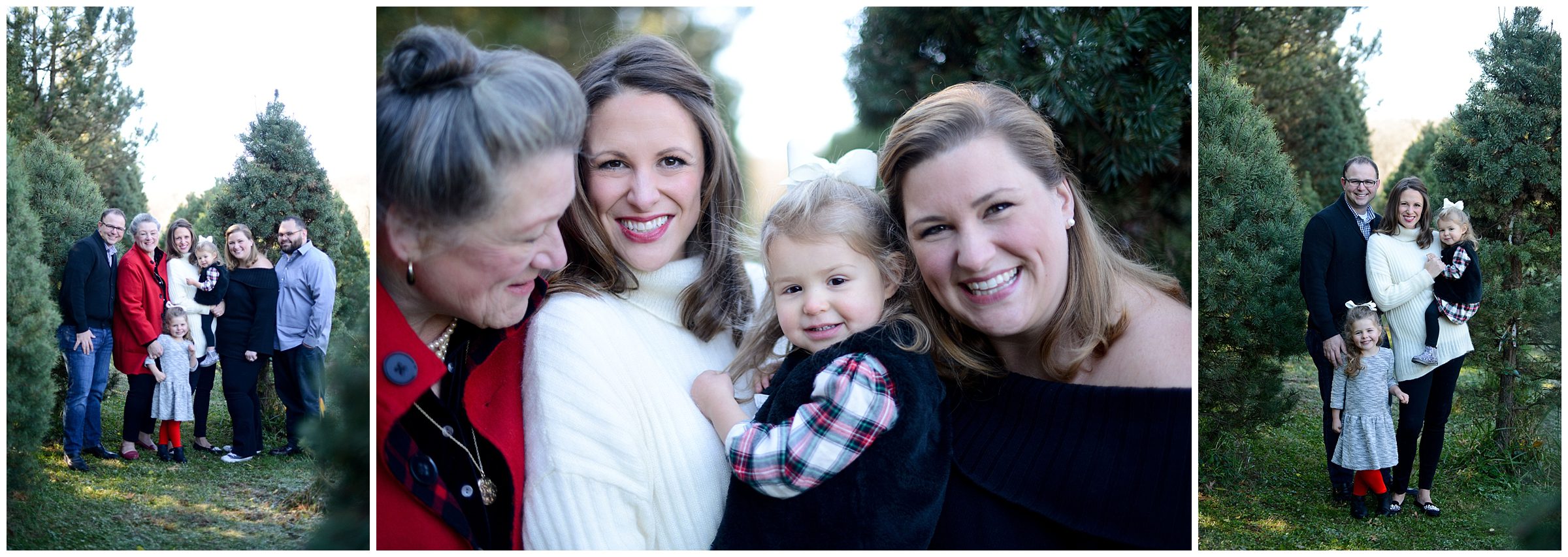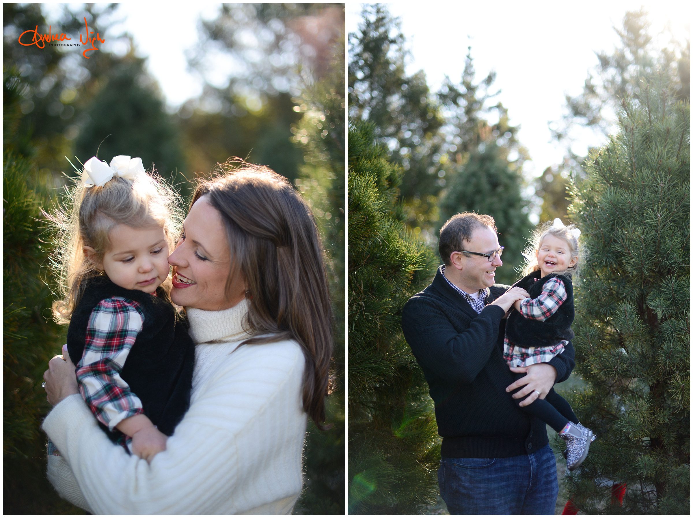 There is something magical about a Christmas tree farm that really puts you in the holiday spirit and I was so excited when the Dailey family wanted to do their pictures there! It was a chilly but beautiful morning at the farm and we had really awesome light for their pictures. I love that Laura’s mom, her sister & her sister’s fiancé were able to join us for the shoot as well! Thank you Dailey family for a fun shoot, I love how festive these are! Merry Christmas! Andrea