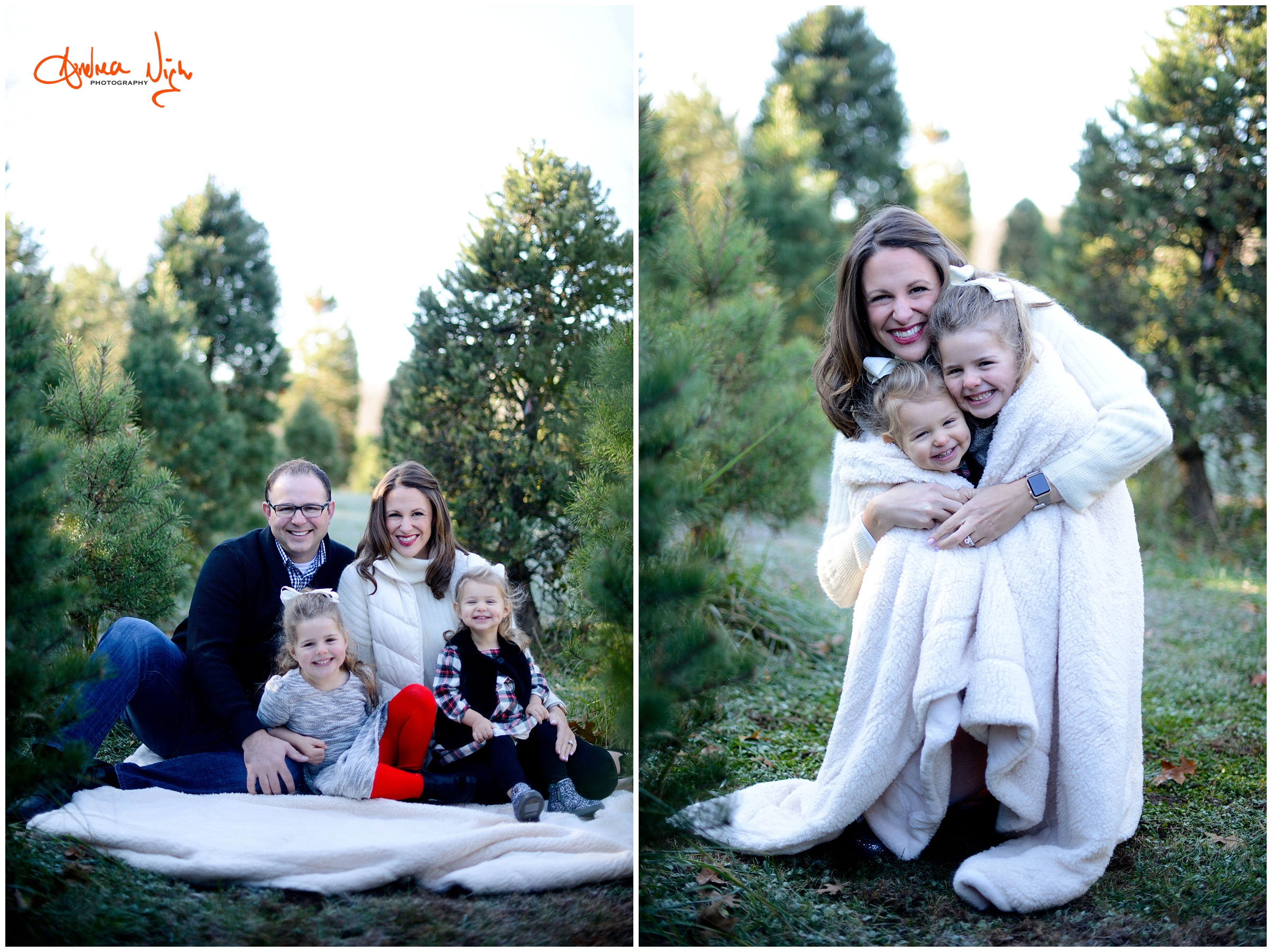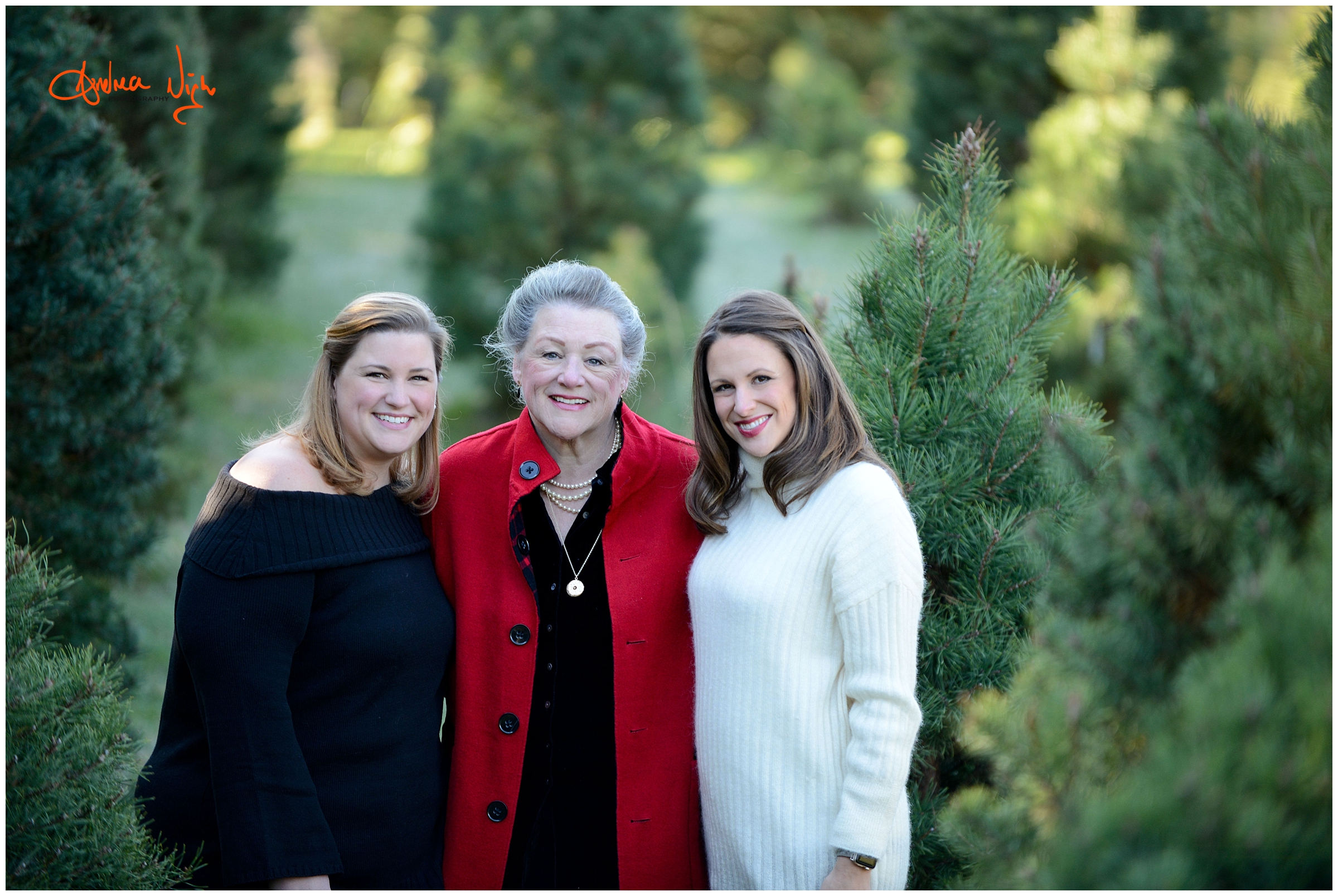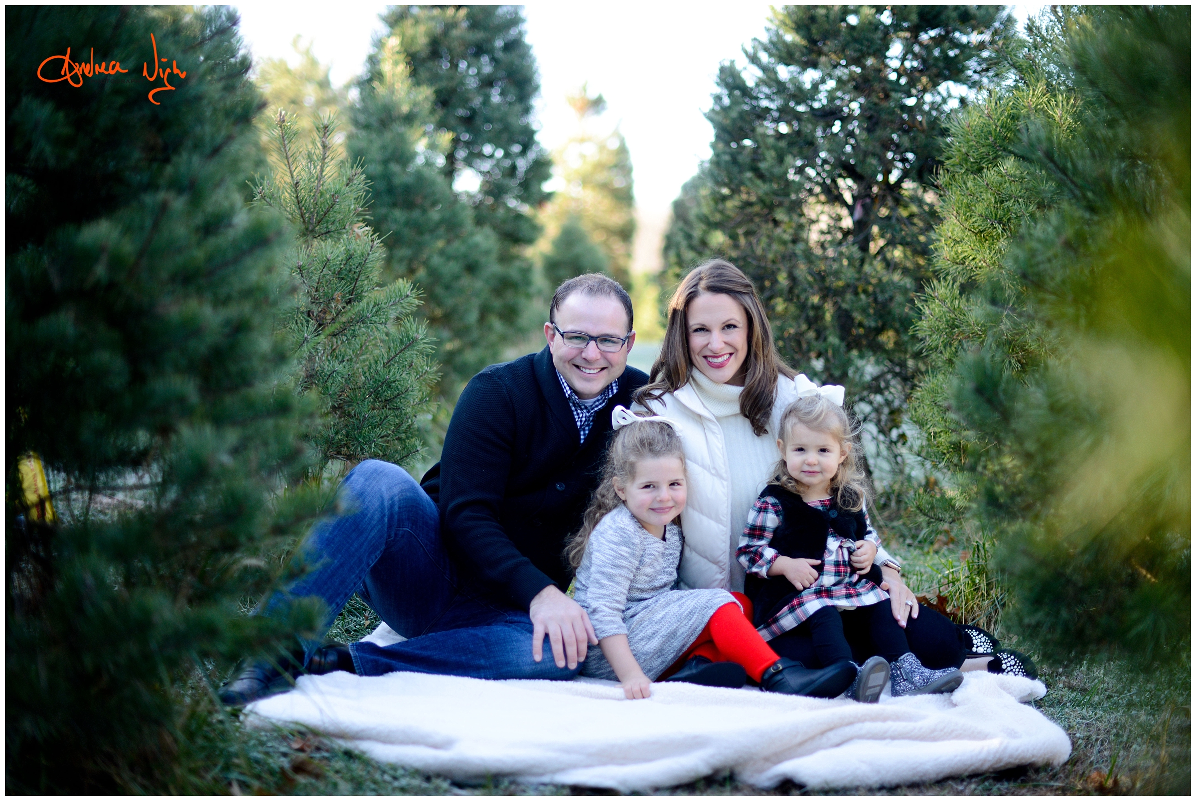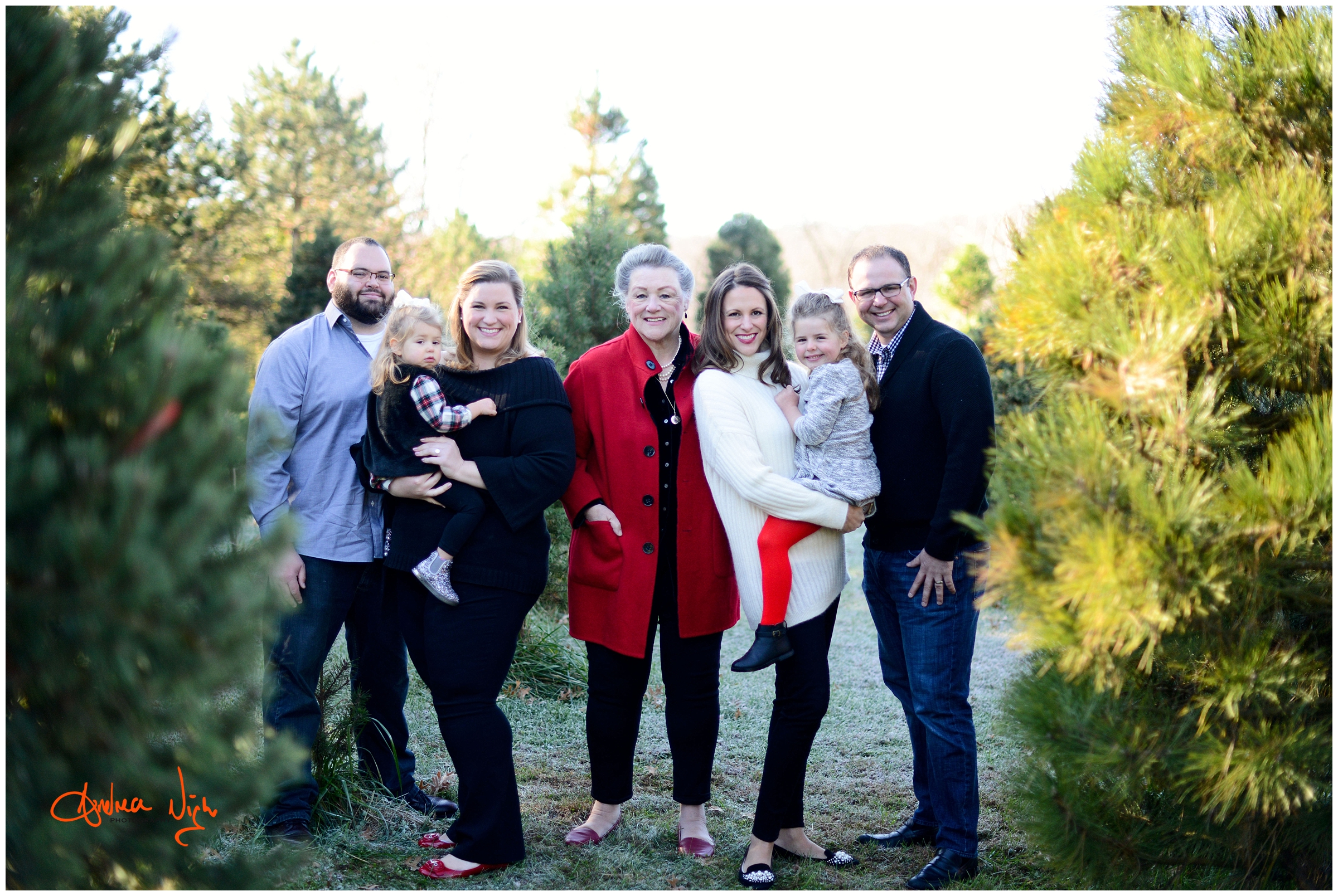 There is something magical about a Christmas tree farm that really puts you in the holiday spirit and I was so excited when the Dailey family wanted to do their pictures there! It was a chilly but beautiful morning at the farm and we had really awesome light for their pictures. I love that Laura’s mom, her sister & her sister’s fiancé were able to join us for the shoot as well! Thank you Dailey family for a fun shoot, I love how festive these are! Merry Christmas! Andrea