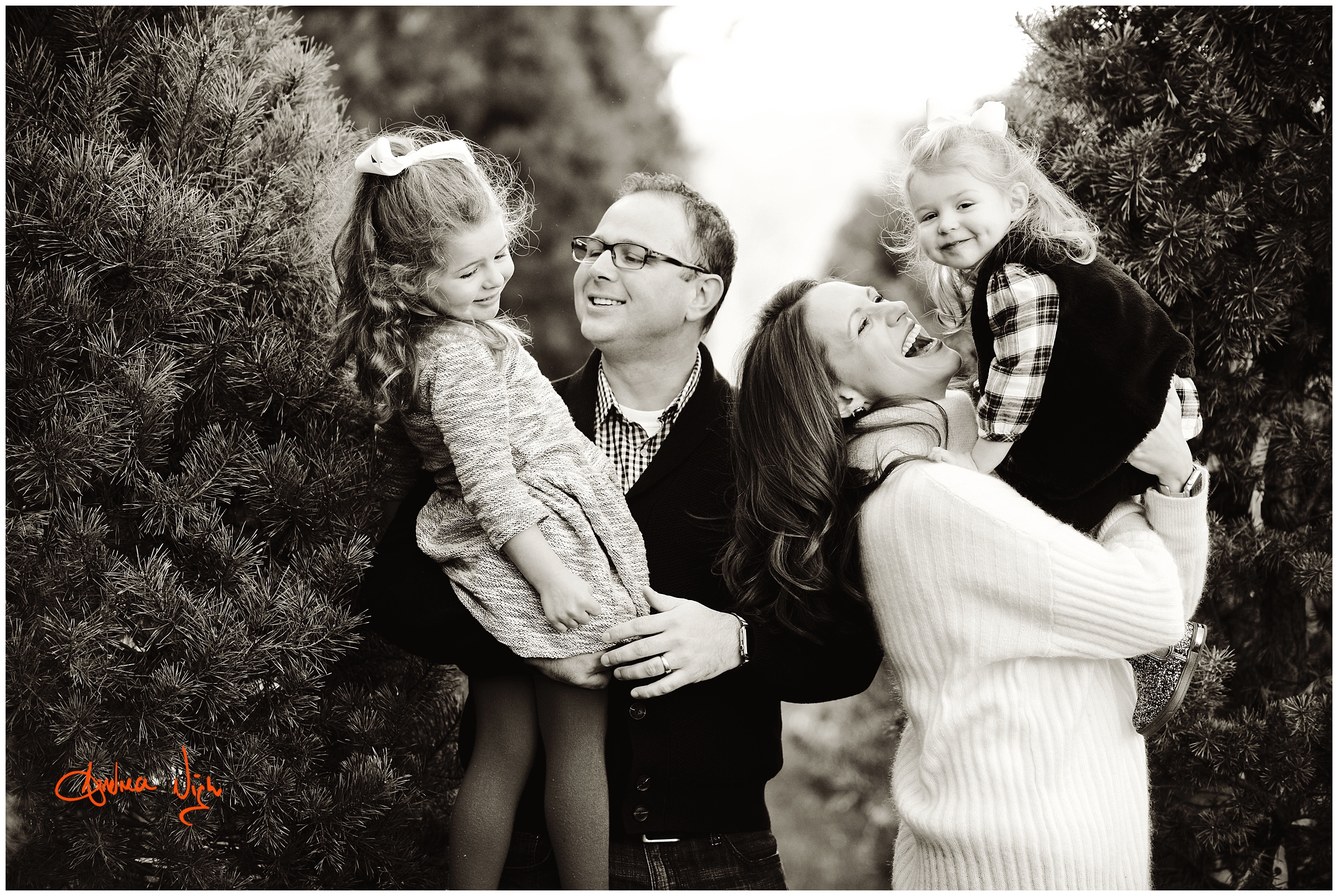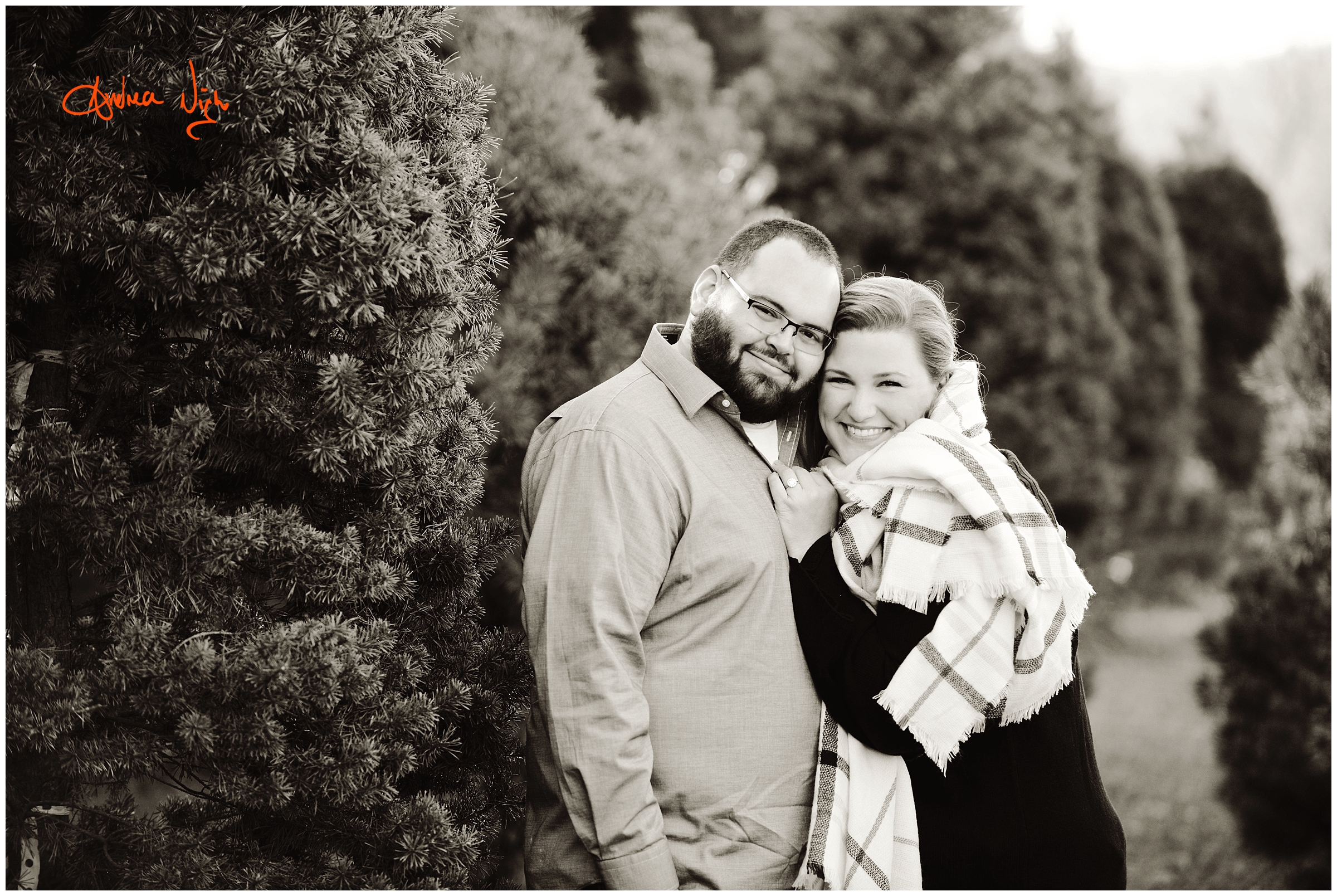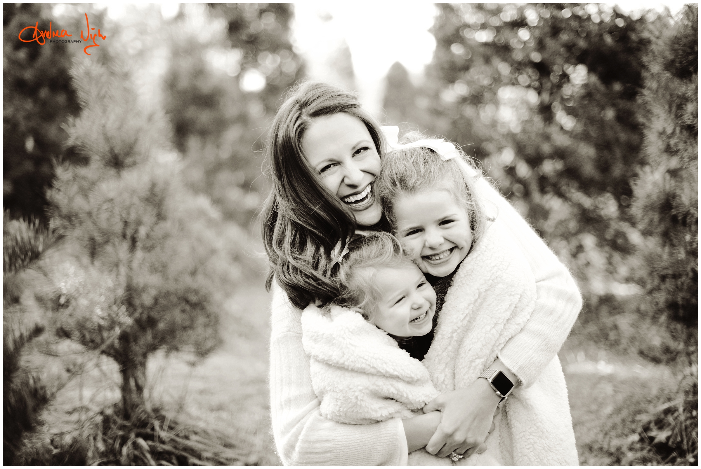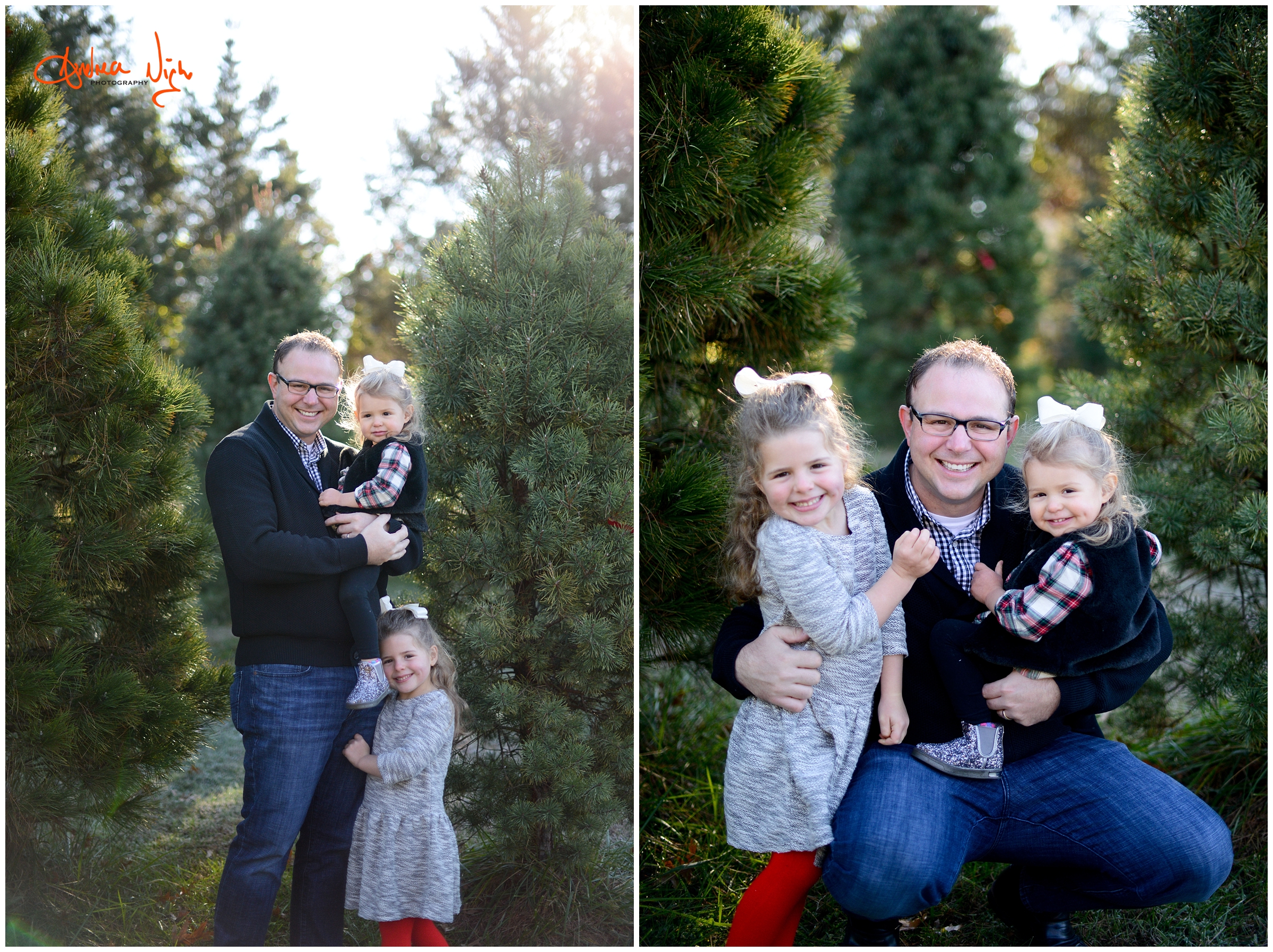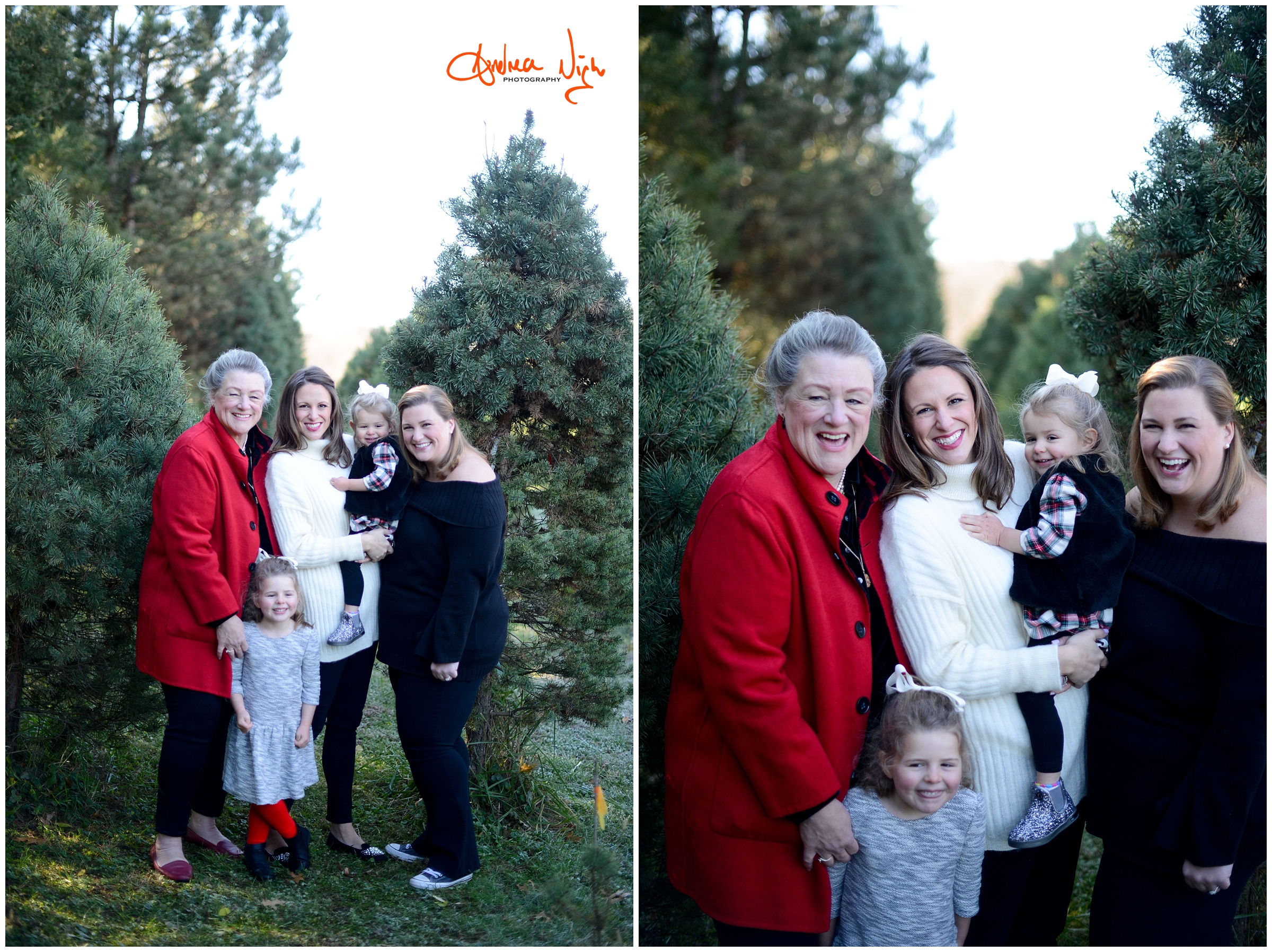 There is something magical about a Christmas tree farm that really puts you in the holiday spirit and I was so excited when the Dailey family wanted to do their pictures there! It was a chilly but beautiful morning at the farm and we had really awesome light for their pictures. I love that Laura’s mom, her sister & her sister’s fiancé were able to join us for the shoot as well! Thank you Dailey family for a fun shoot, I love how festive these are! Merry Christmas! Andrea