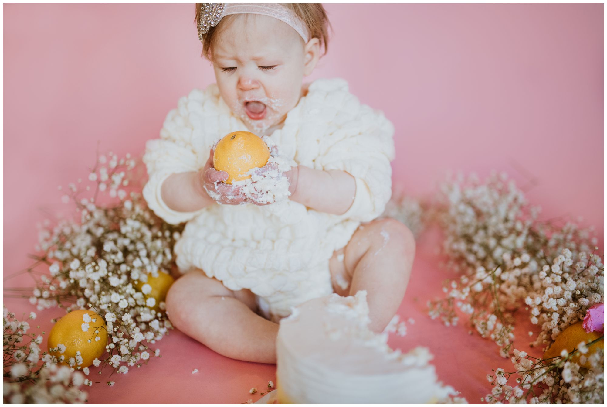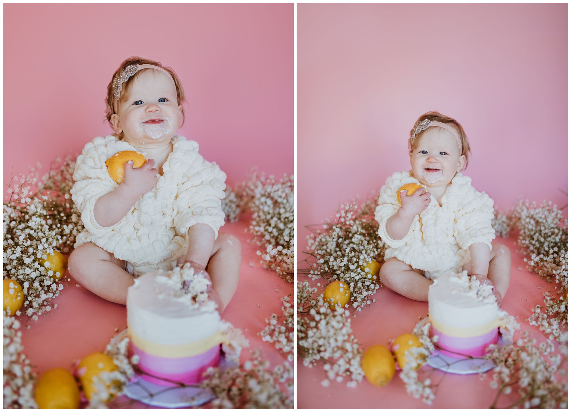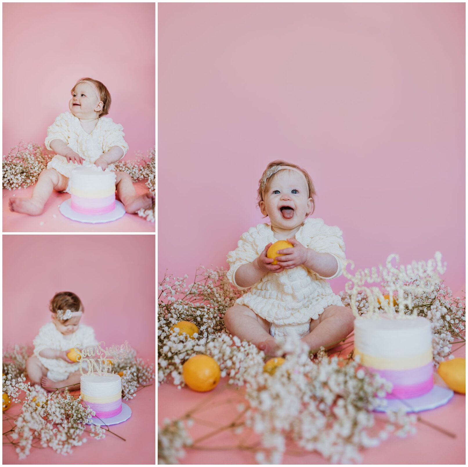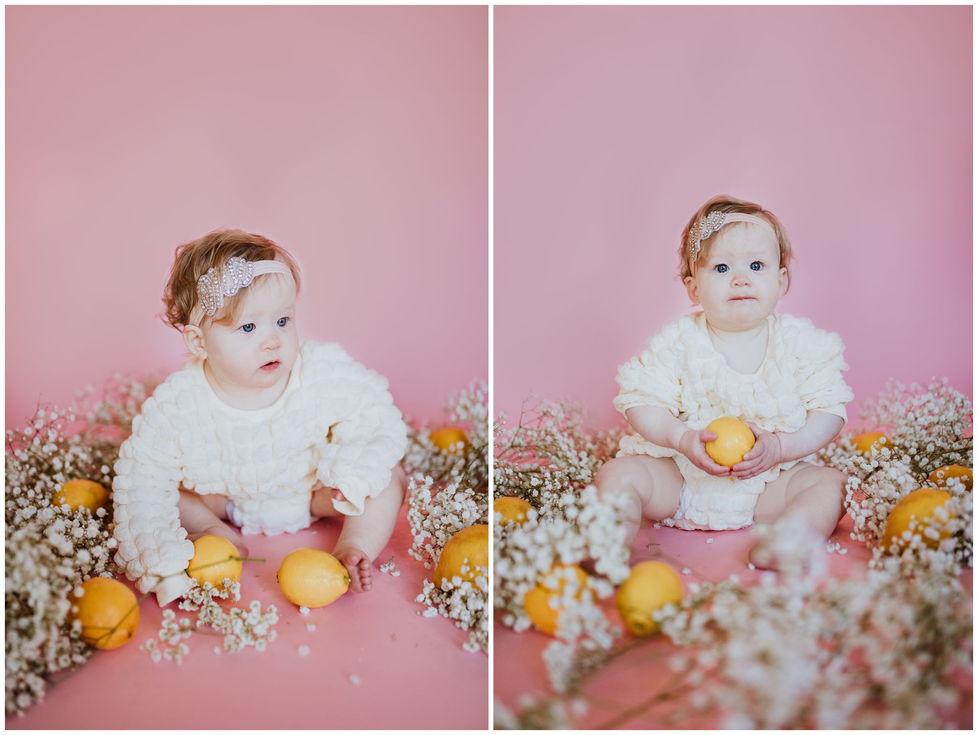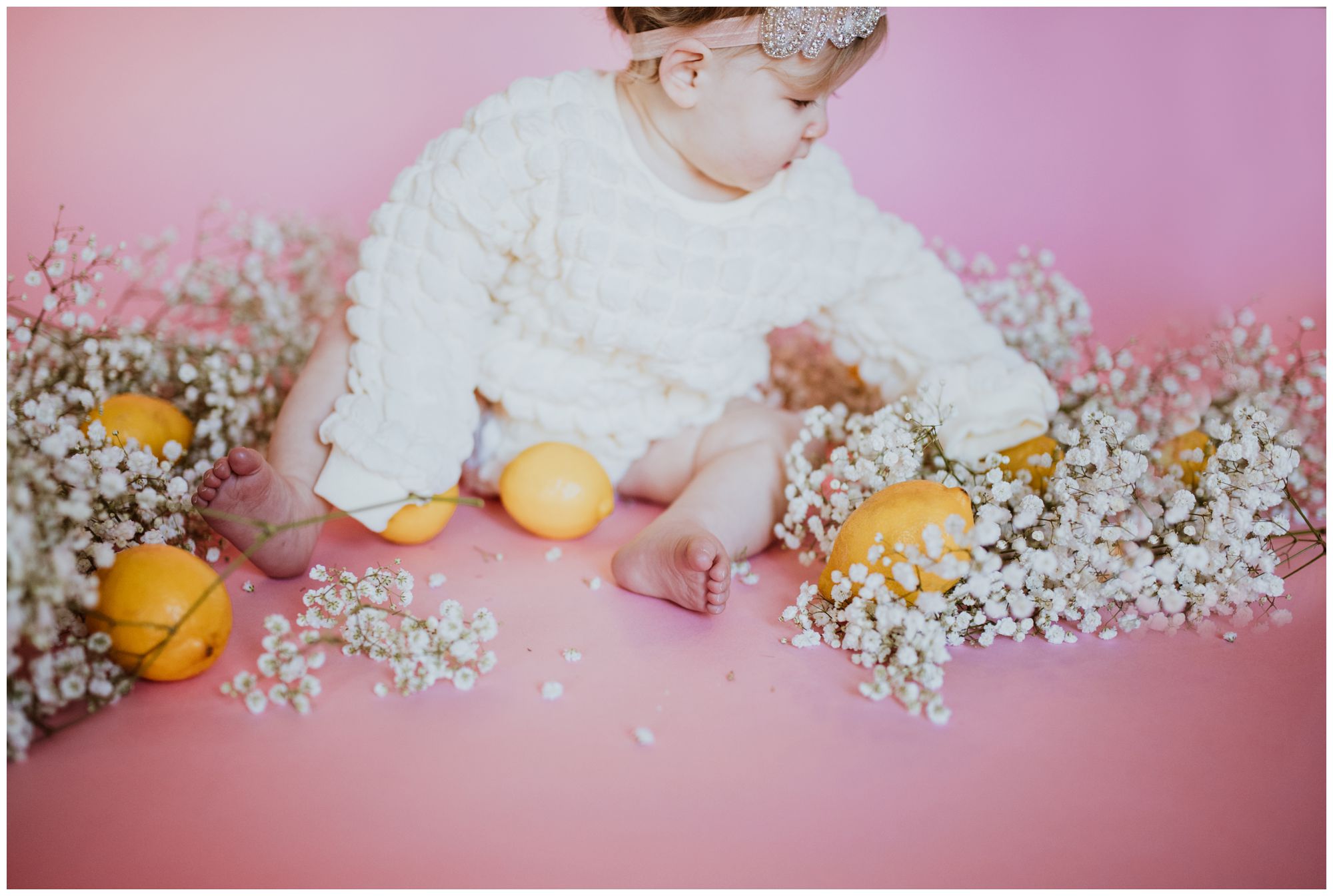 Loving this simple and modern cake smash we did for Daphne’s one year shoot! Baby’s breath, yellow lemons and a pink backdrop make this the sweetest setup! Happy birthday sweet and sour one!
