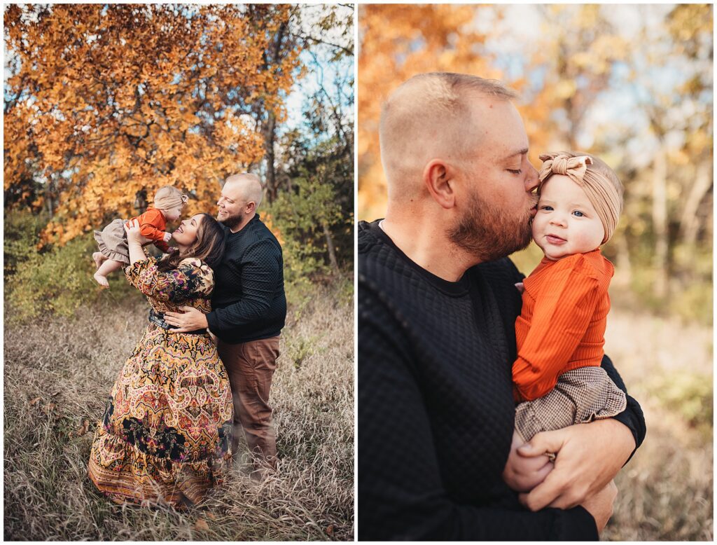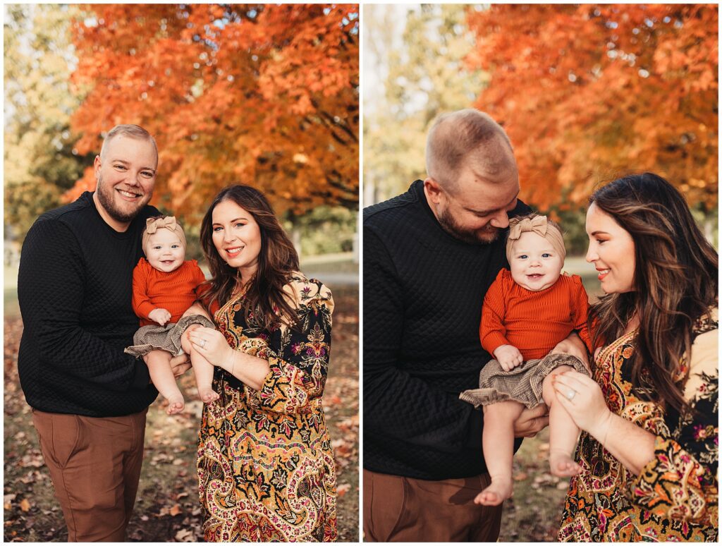 This young family showed up exactly as they are: relaxed, playful, and totally in sync with one another. The fall colors wrapped around them in the best way—golden grasses, warm leaves, and just enough color to add depth without stealing the show. Capturing such moments is what makes fall family photos rewarding.
