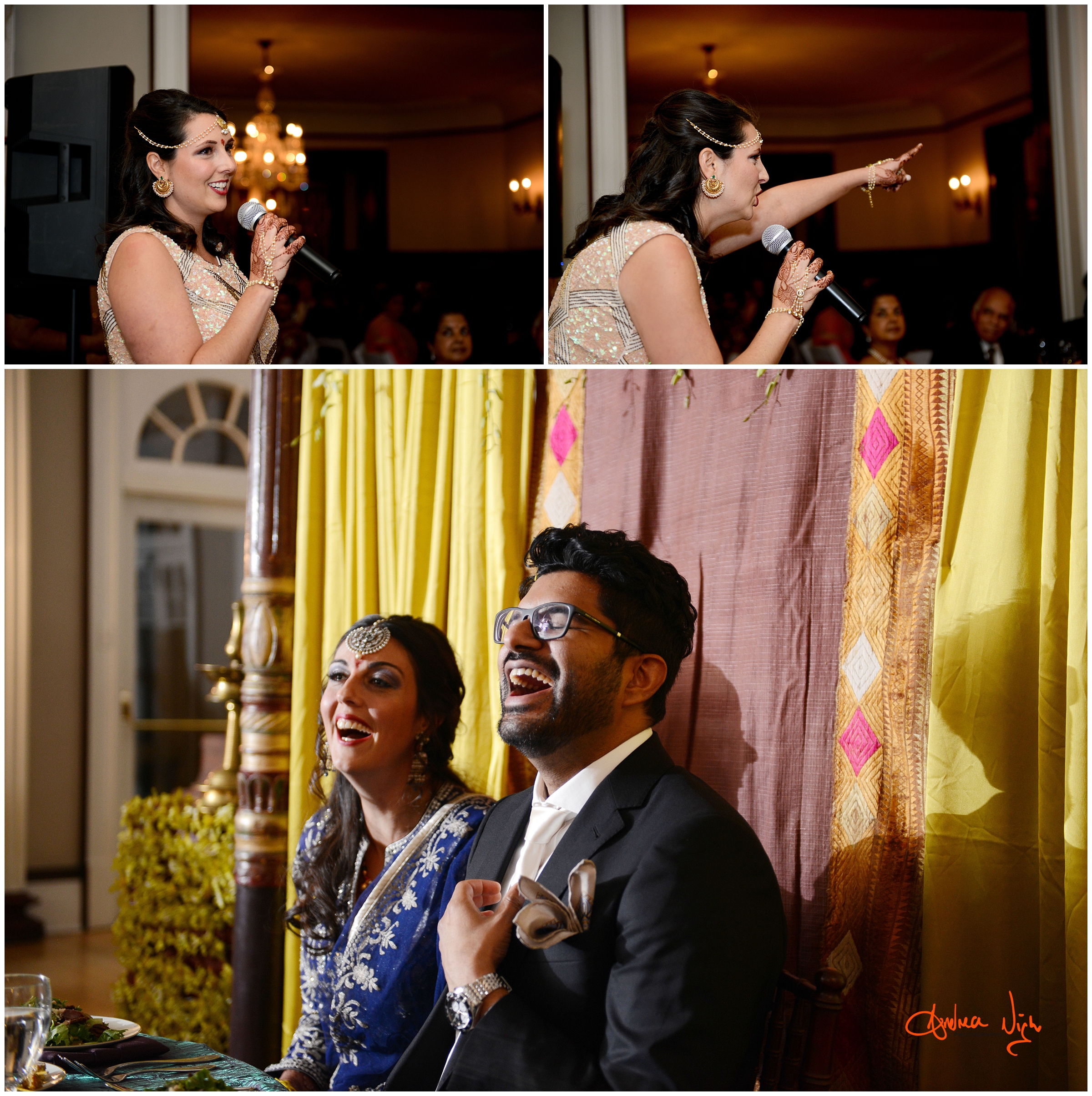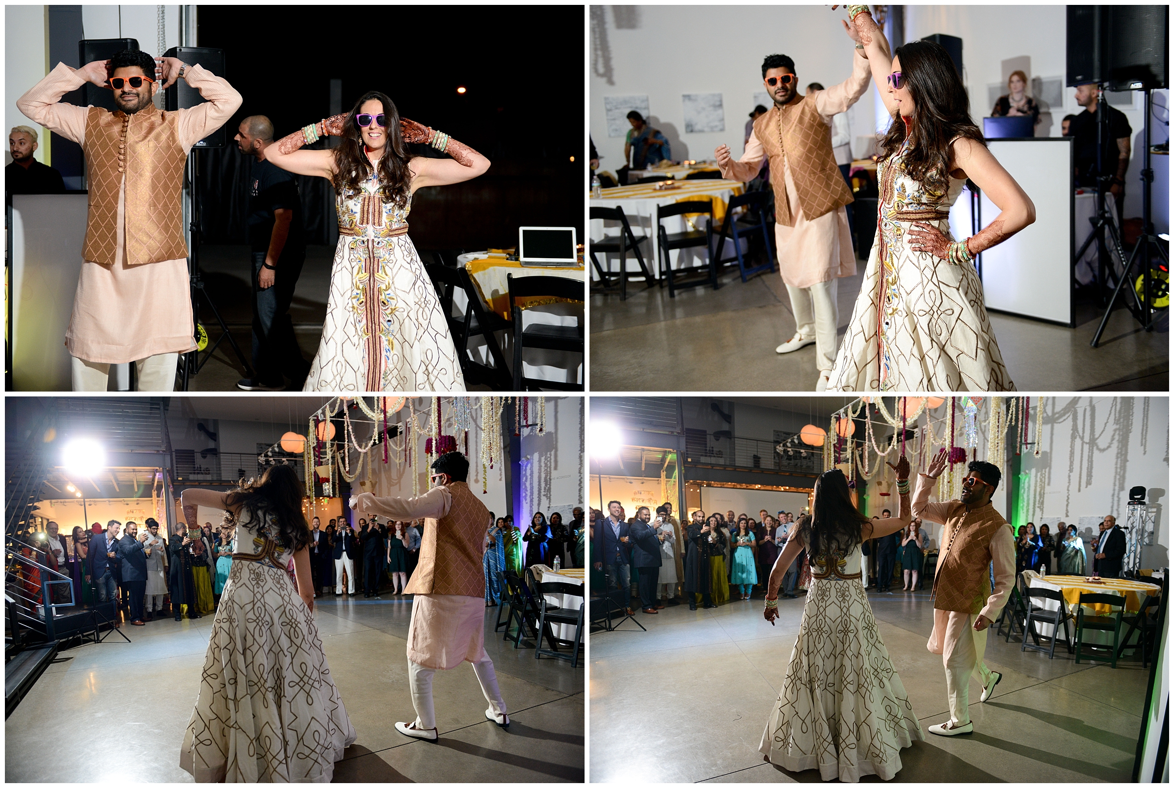 Friday Night kicked off the colorful celebration with the Sangeet held at Space Gallery in Denver. Andrea and Abhi entered the party with a choreographed dance.