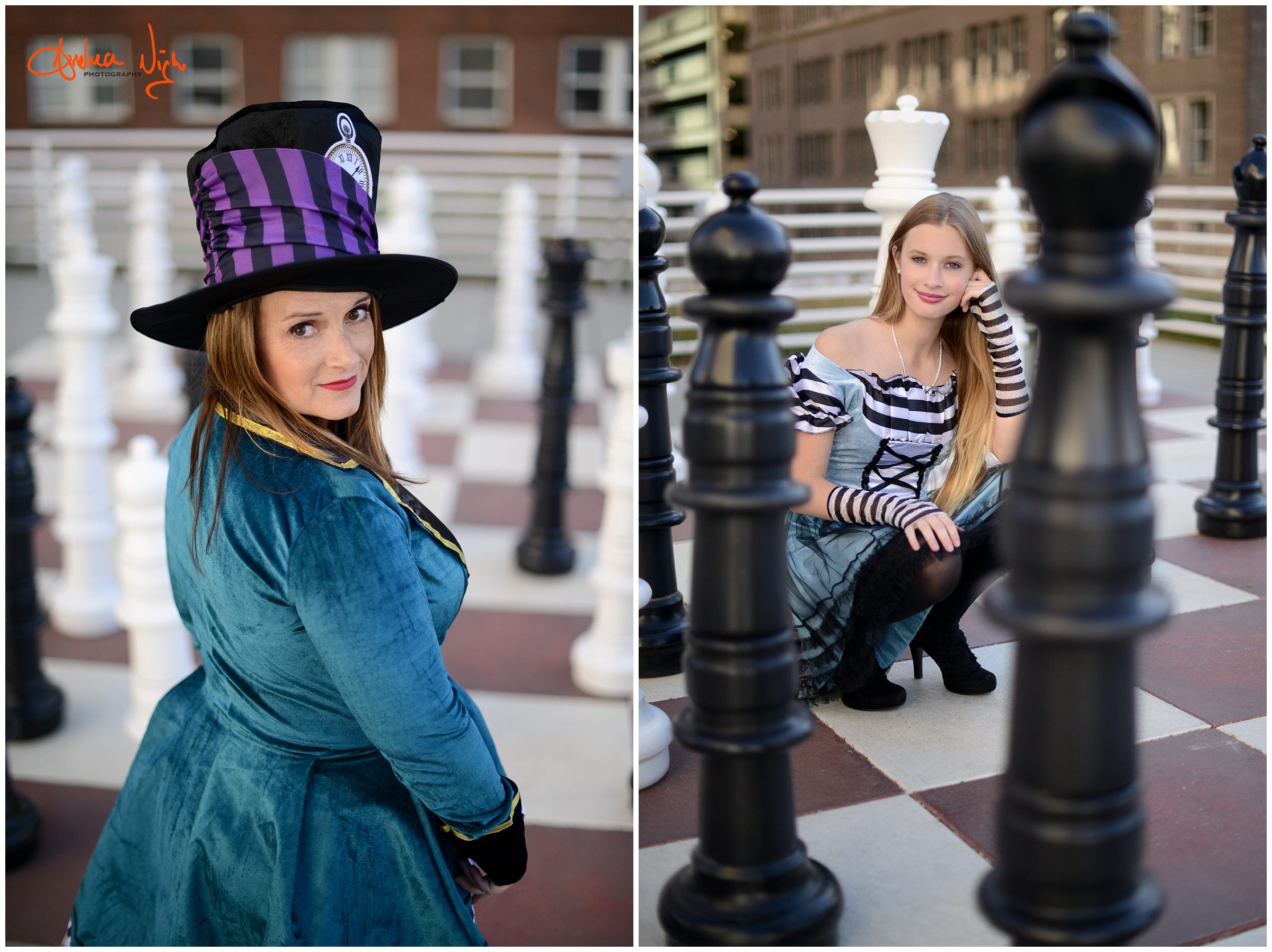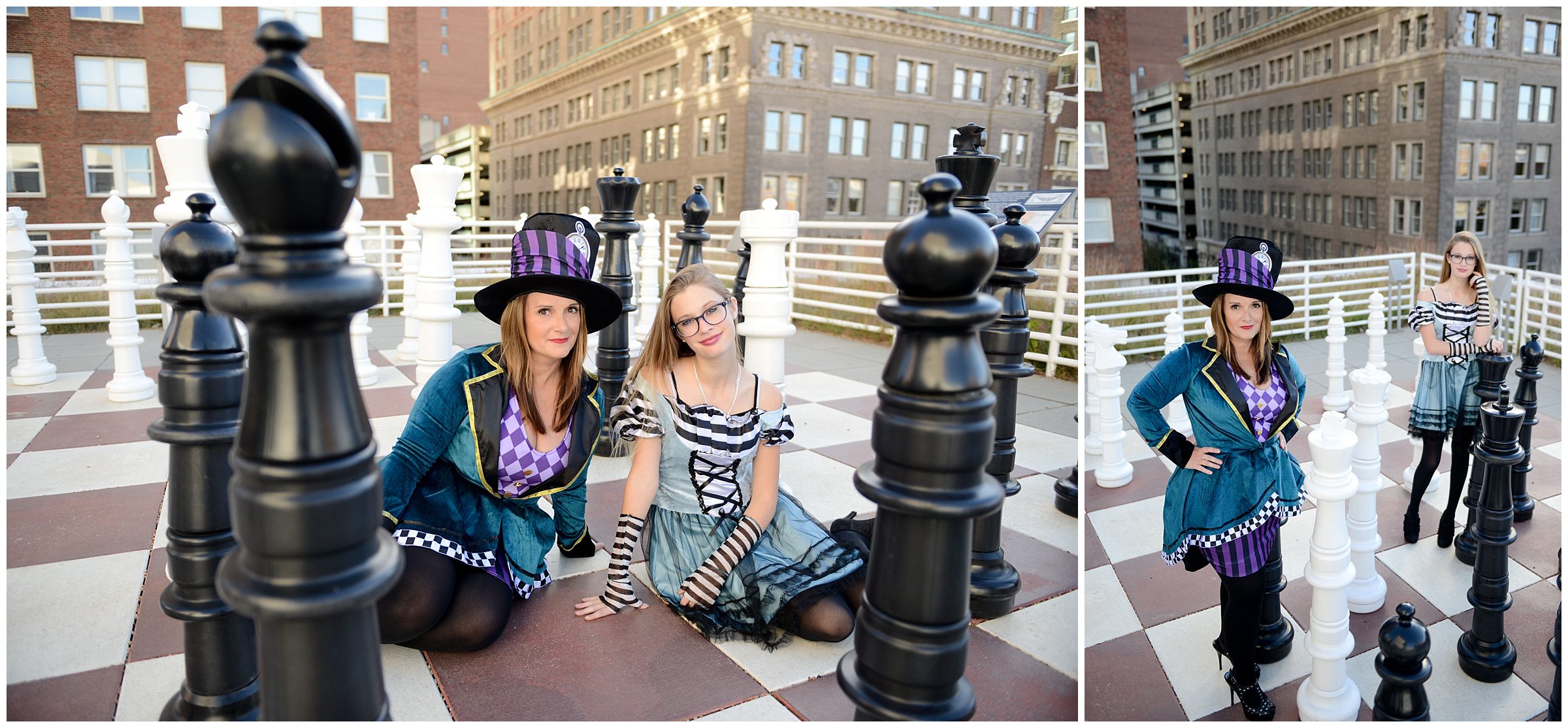 It is never a dull moment with these two and I love how part of their session is always a theme. Last year was Breakfast at Tiffany’s and this year, Alice in Wonderland! I loved this cute idea and we found such a perfect location for their theme – the life size chess board at the KC library. What a fun idea and creative way to mix things up! Andrea